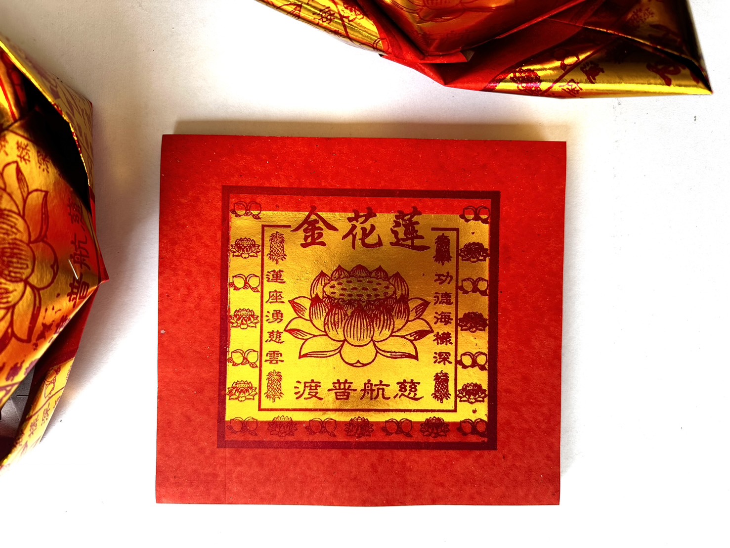 - ใช้พับเพื่อไหว้เทพเจ้าและบรรพบุรุษในพิธีสำคัญ ลูกหลานสามารถพับได้ตามความเชื่อ เช่น พับเป็นเรือเพื่อเสริมโชคลาภ หรือดอกบัวเพื่อสื่อถึงความบริสุทธิ์