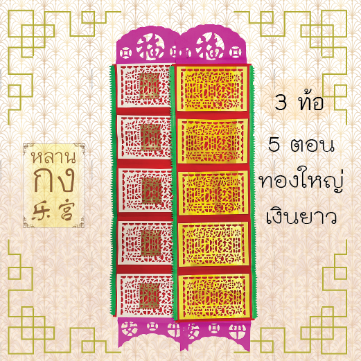 - ✅ ตัวหนังสือทอง แสดงถึงอักษรมงคลที่ใช้ในการขอพร เช่น “ฮก” (โชคลาภ) “กุ้ยนั้ง” (ผู้อุปถัมภ์) “เผ่งอัน” (ความร่มเย็น) และ “แกมึ้ง” (ครอบครัวดี)